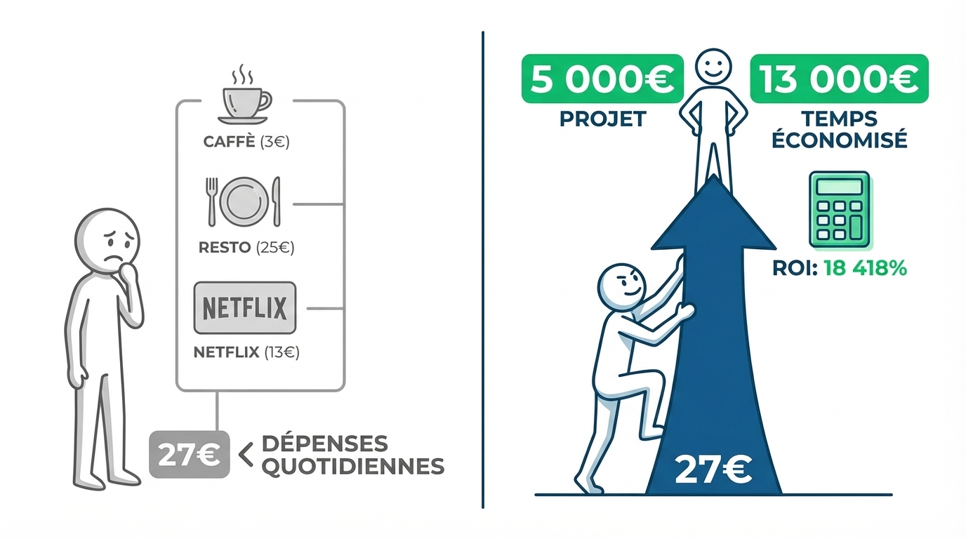 Si ton temps vaut 50€/heure, c'est 2,000€ de temps gaspillé. Chaque mois.