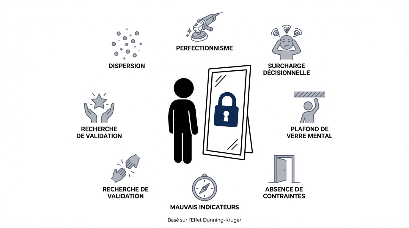 Après 1000+ heures d'observation, j'ai identifié les 7 verrouillages psychologiques qui créent 95% des cas de stagnation.